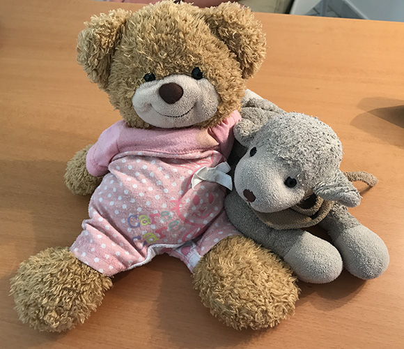 Kuscheltiergallerie unserer jüngsten Patientinnen und Patienten